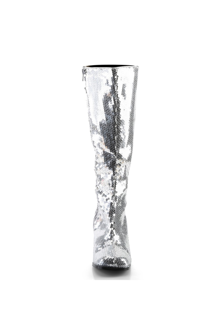 3″” (7.6cm) Block Heel, Sequin Knee Boot full inner side Zip Closure
