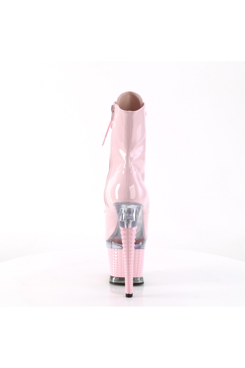 “” (178mm) Heel, 3″” (76mm) Textured Platform Open Toe Lace-Up Front Ankle Boot, Inner Side Zip Closure