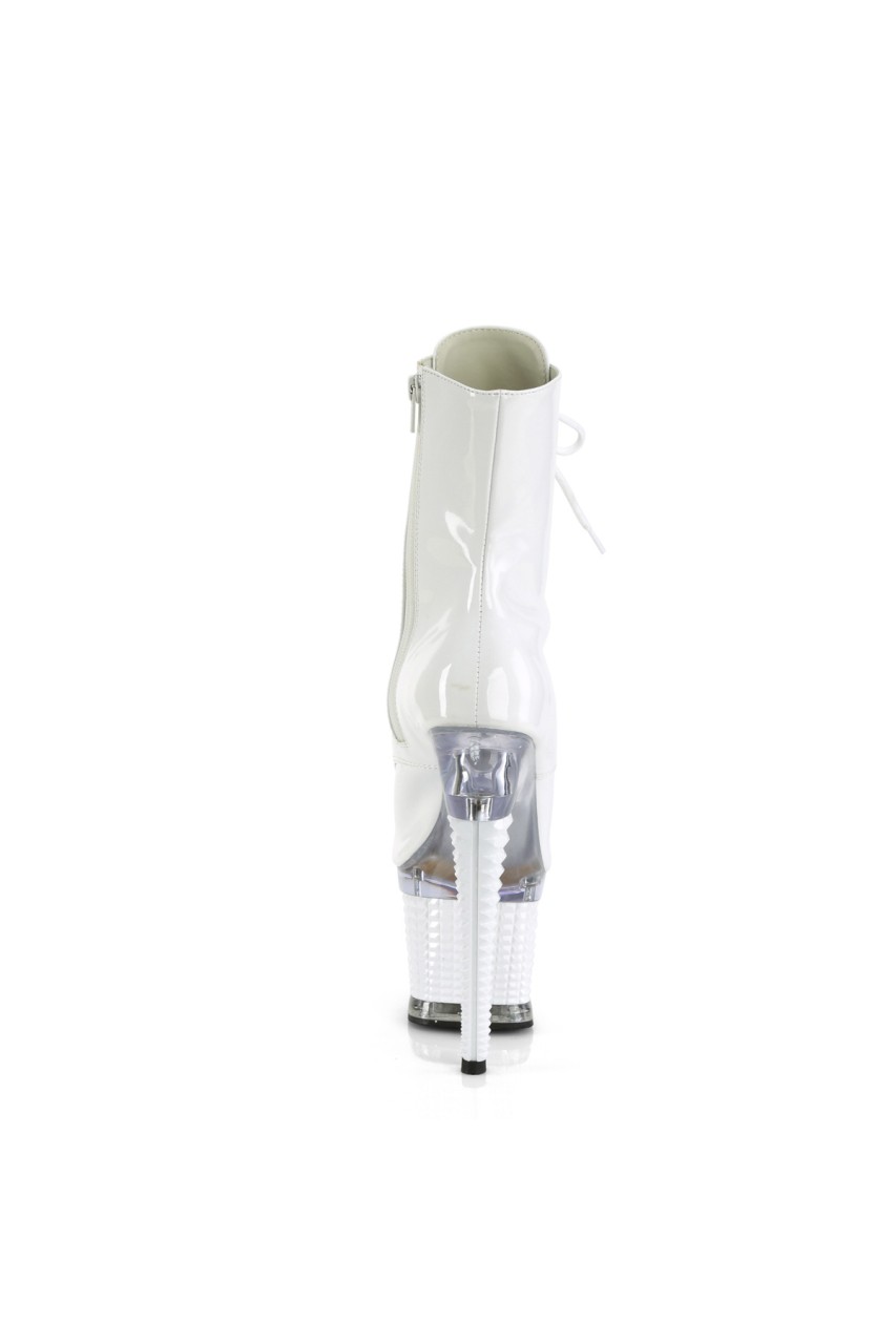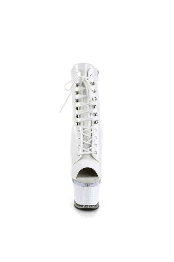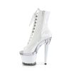 7″” (178mm) Heel, 3″” (76mm) Textured Platform Open Toe Lace-Up Front Ankle Boot, Inner Side Zip Closure