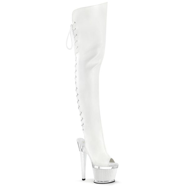 7″ Heel, 3″ Textured PF Lace-Up Back Thigh Boot, Side Zip