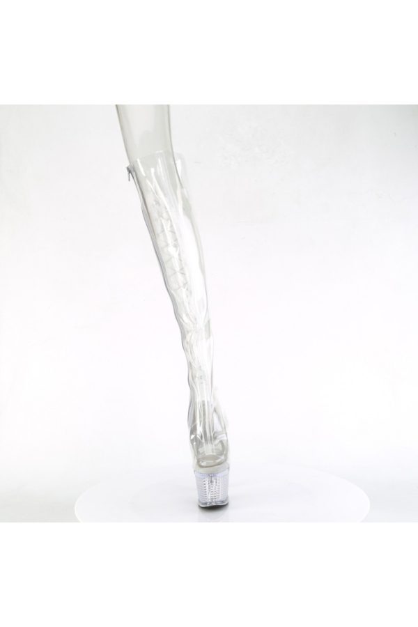 7″” (178mm) Heel, 3″” (76mm) Textured PF Open Toe/Heel Lace-Up Back Over-The-Knee Boot, Full-Length Inner Side Zip Closure