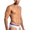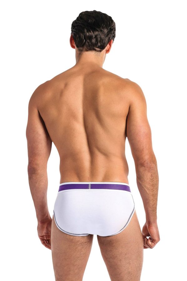 Low rise brief, baseball stitched pouch and trim, color coordinated plush branded waistband, full back coverage
