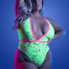 Teddy with Deep Plunge Neckline and Contrast Elastic Detail with Snap Closure