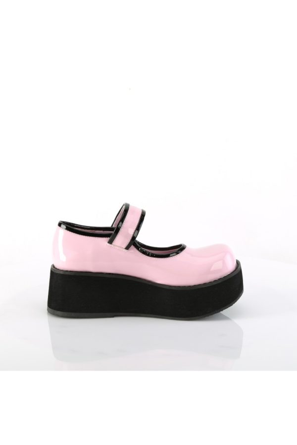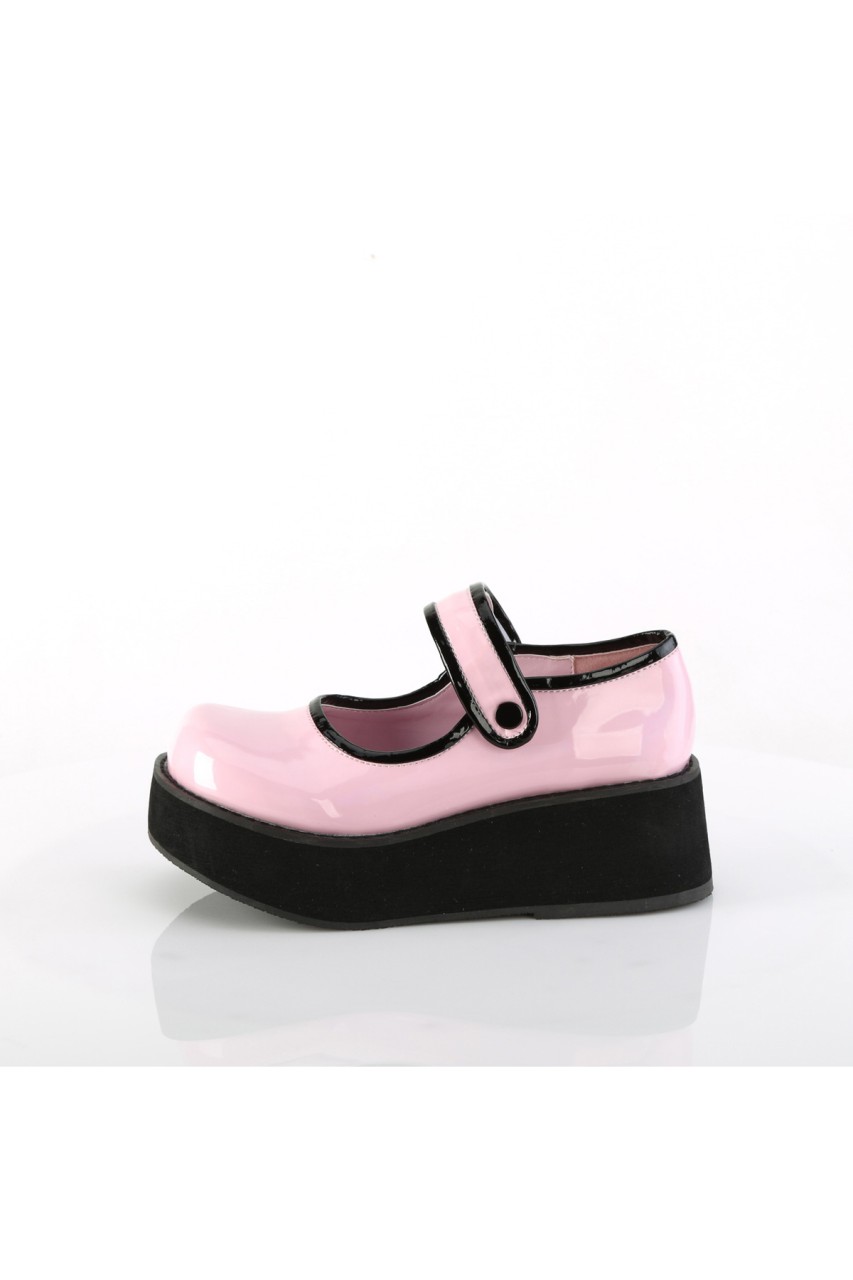 2 1/4″” (57mm) Platform Hook N Loop Mary Jane w/ Contrast Piping & Button Detail