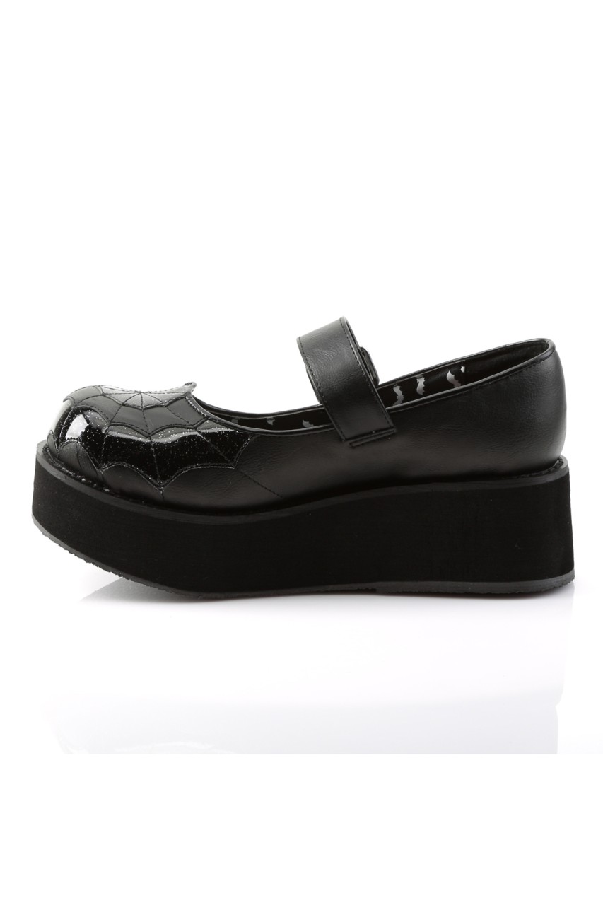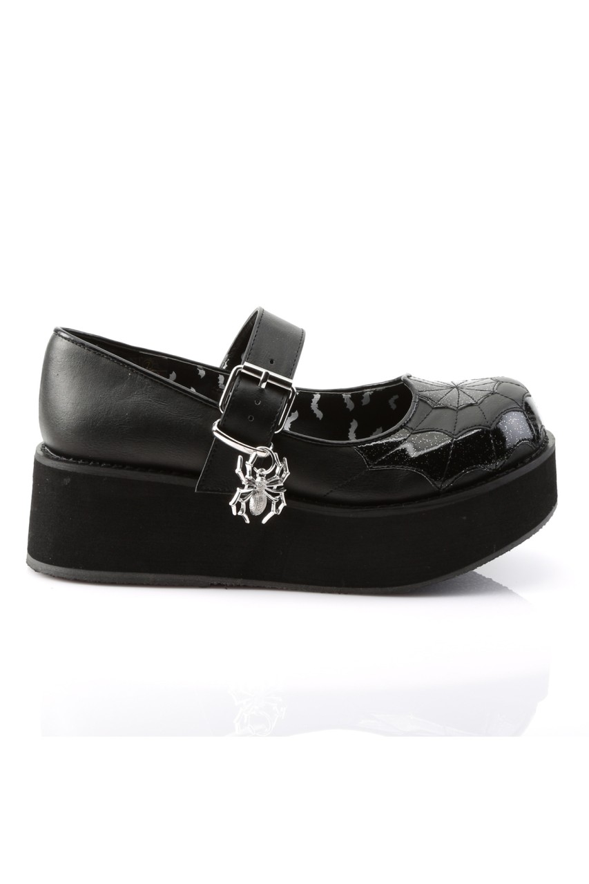 2 1/4″” (5.7cm) Platform Mary Jane Featuring Black Spider Web Pattern On Vamp & Spider Charm
