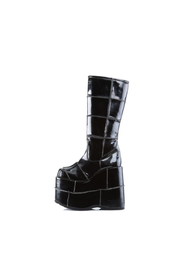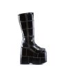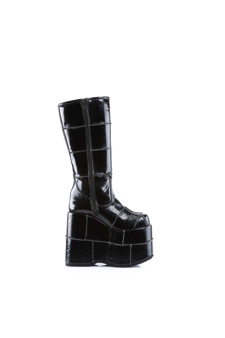 7″” (17.8cm) Platform Goth Cyber Gogo Punk Patched Knee Boot, Full Inner Side Zip Closure