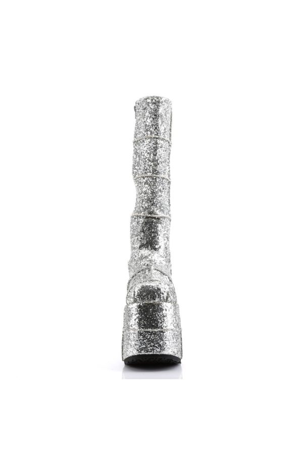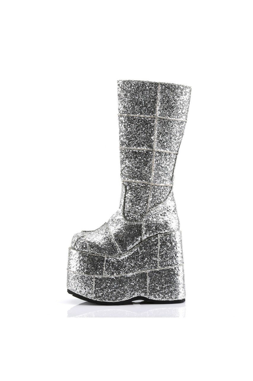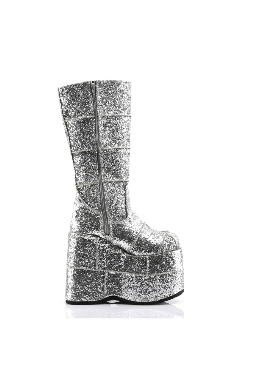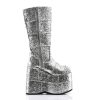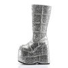 7″” (17.8cm) Platform Goth Cyber Gogo Punk Patched Knee Boot, Full Inner Side Zip Closure