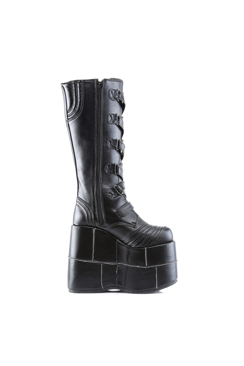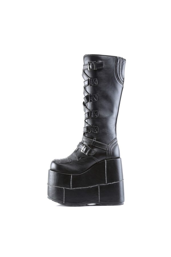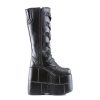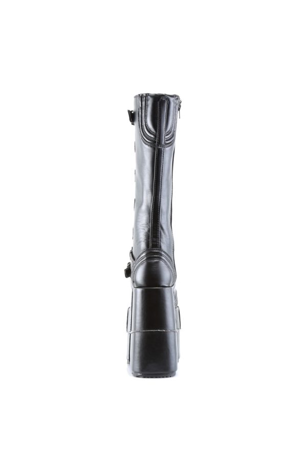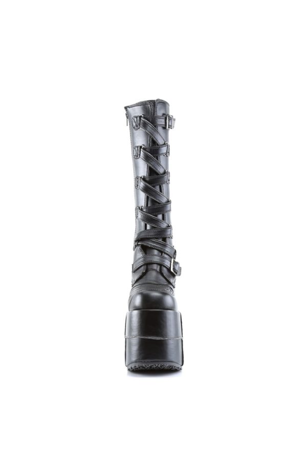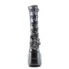 7″” (17.8cm) Platform Goth Cyber Gogo Punk Zig Zag Strap Knee Boot, Full Inner Side Zip Closure