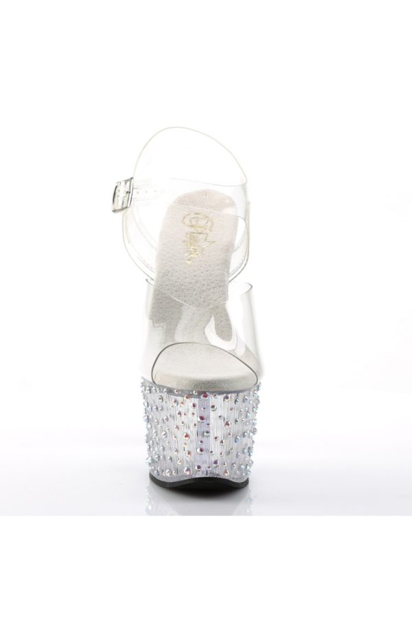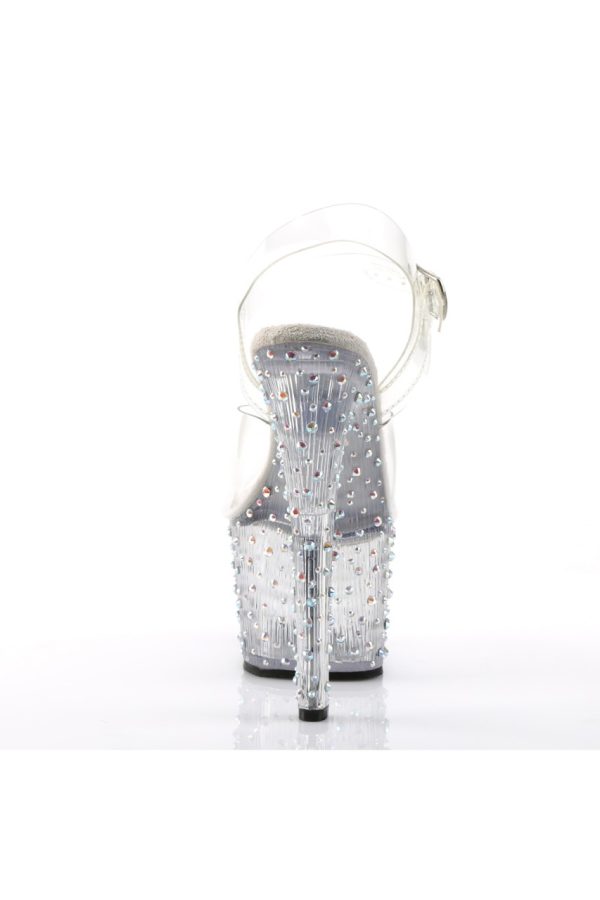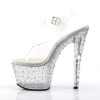 7″” (17.8cm) Heel, 2 3/4″” (7cm) Platform Ankle Strap Sandal Featuring Multi-Size Rhinestones Encrusted on the Bottom