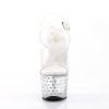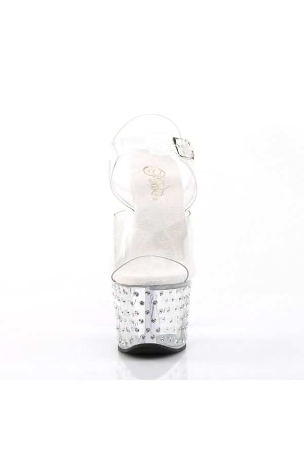 7″” (17.8cm) Heel, 2 3/4″” (7cm) Platform Ankle Strap Sandal Featuring Rhinestone Studded Bottom