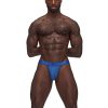 From the Sexagon collection by Male Power the Strappy ring jock with deluxe elastic back straps, including a yback thong strap, frames the exposed rear. Nickel plated rings and a plush branded printed waistband. Poly spandex hexagon print fabric with micro pin hole perforations for moisture wicking and cool breathability, plush branded elastic waistband. Hand wash separately, cold water, line dry, no bleach