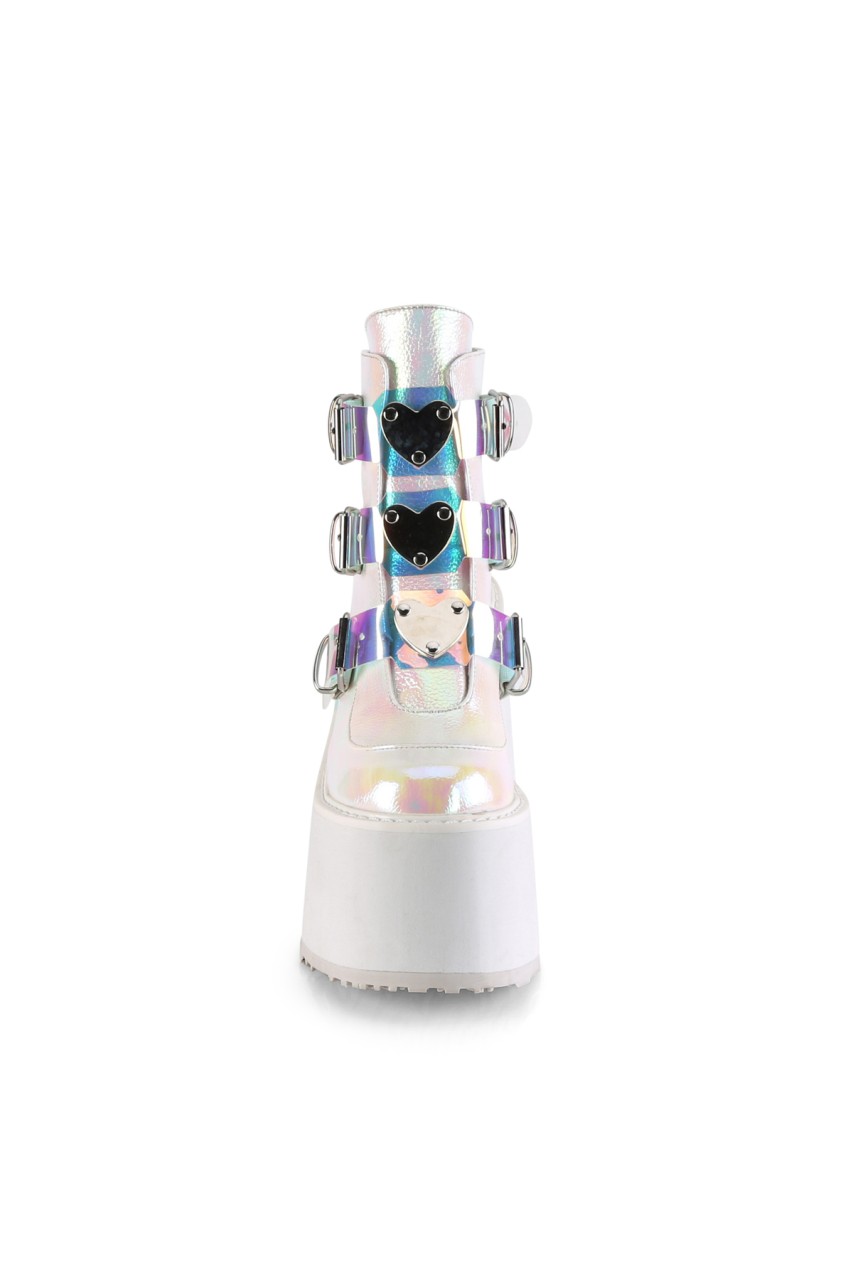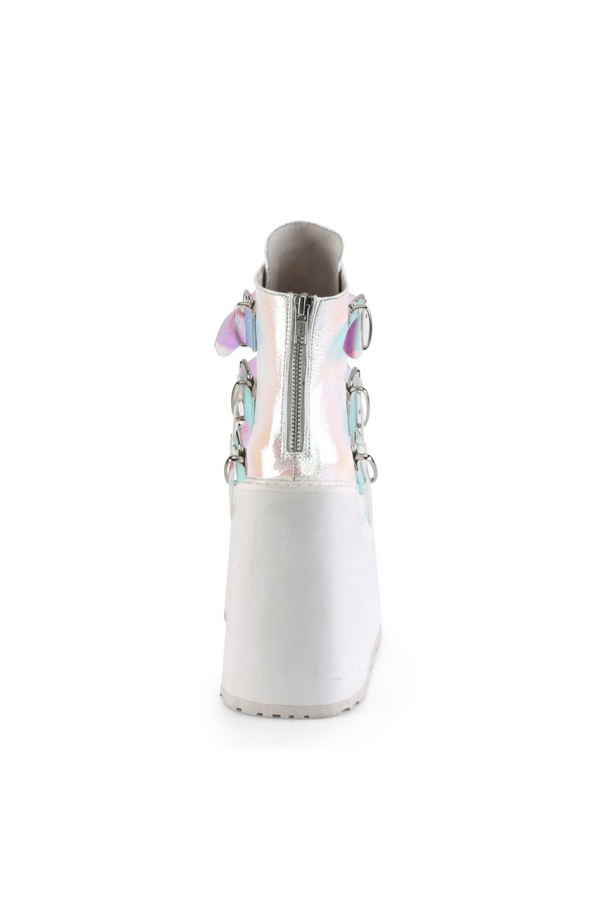 5 1/2″”(140mm) Wedge Platform Ankle Boot Featuring 3 Buckle Straps w/ Metal Plates at Center, Back Metal Zip Closure