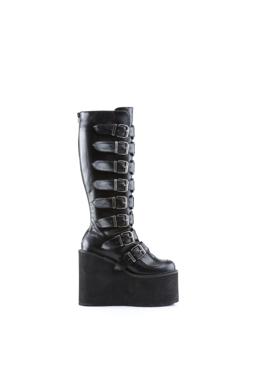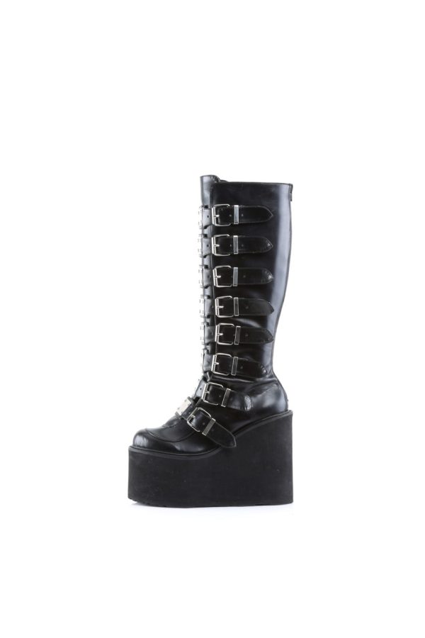 5 1/2″” (14cm) Wedge Platform Goth Punk Gogo Knee Boot with Metal Plates, Full Back Zip Closure