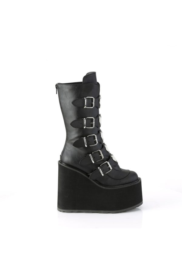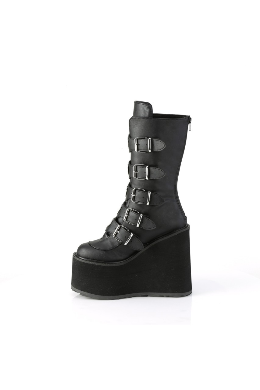 5 1/2″” (140mm) Platform Mid-Calf Boot Featuring 5 Buckle Straps w/ Heart Shaped Metal Plates at Center, Back Metal Zip Closure
