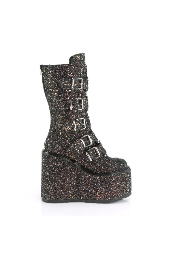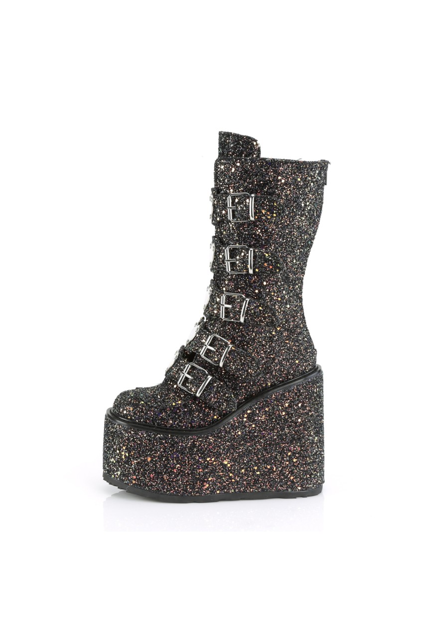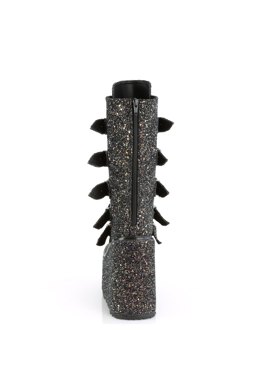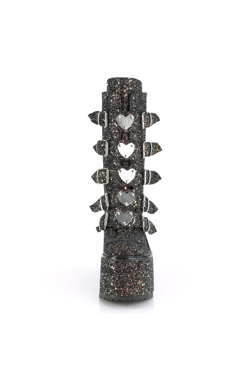 5 1/2″” (140mm) Platform Mid-Calf Boot Featuring 5 Buckle Straps w/ Heart Shaped Metal Plates at Center, Back Metal Zip Closure