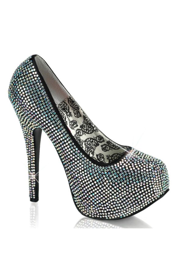 5 3/4″” (14.6cm) Heel, 1 3/4″” (4.5cm) Concealed Platform, Rhinestone Pump