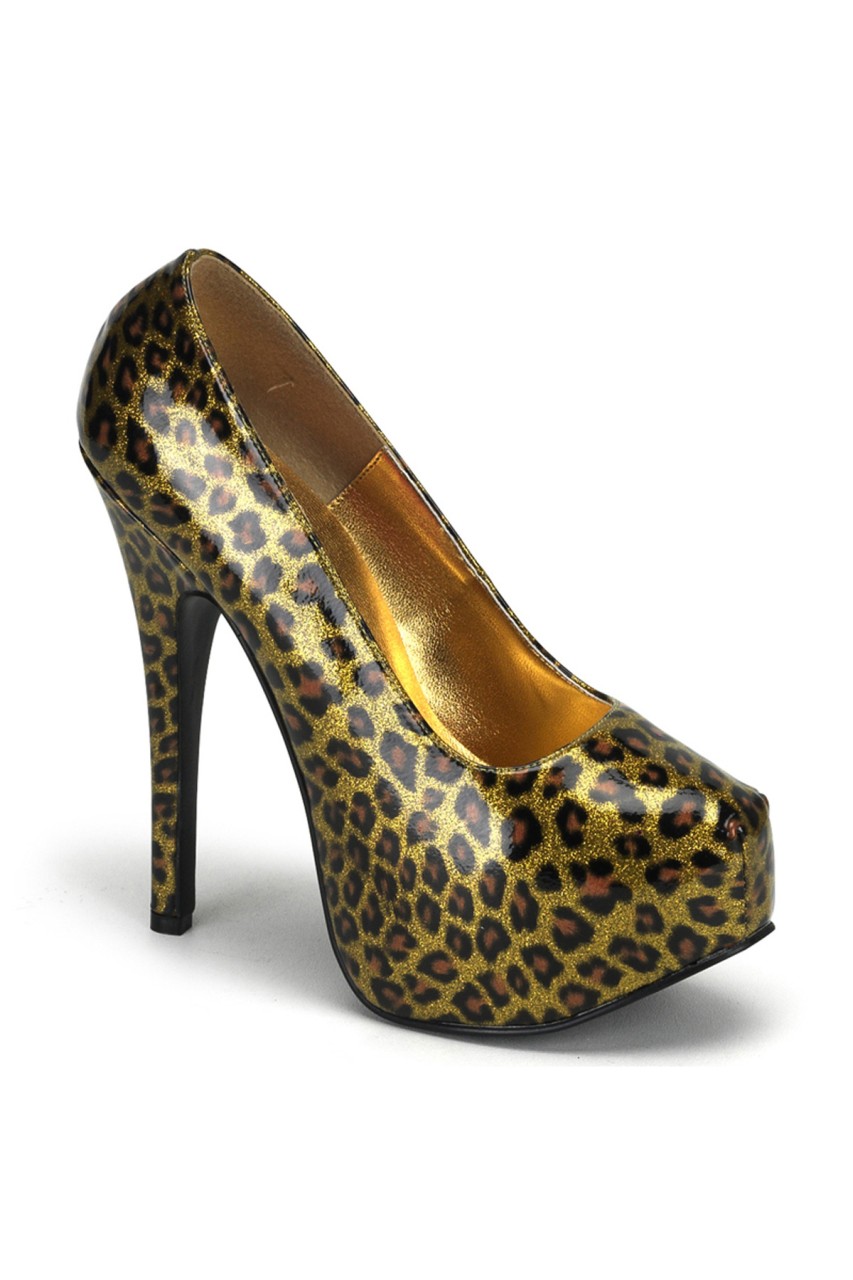 5 3/4″” (14.6cm) Heel, 1 3/4″” (4.5cm) Concealed Platform, Cheetah Glitter Patent Pump