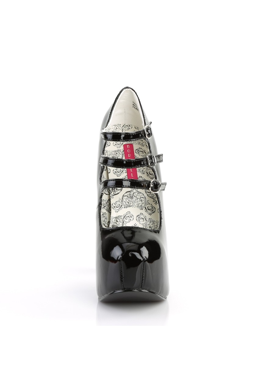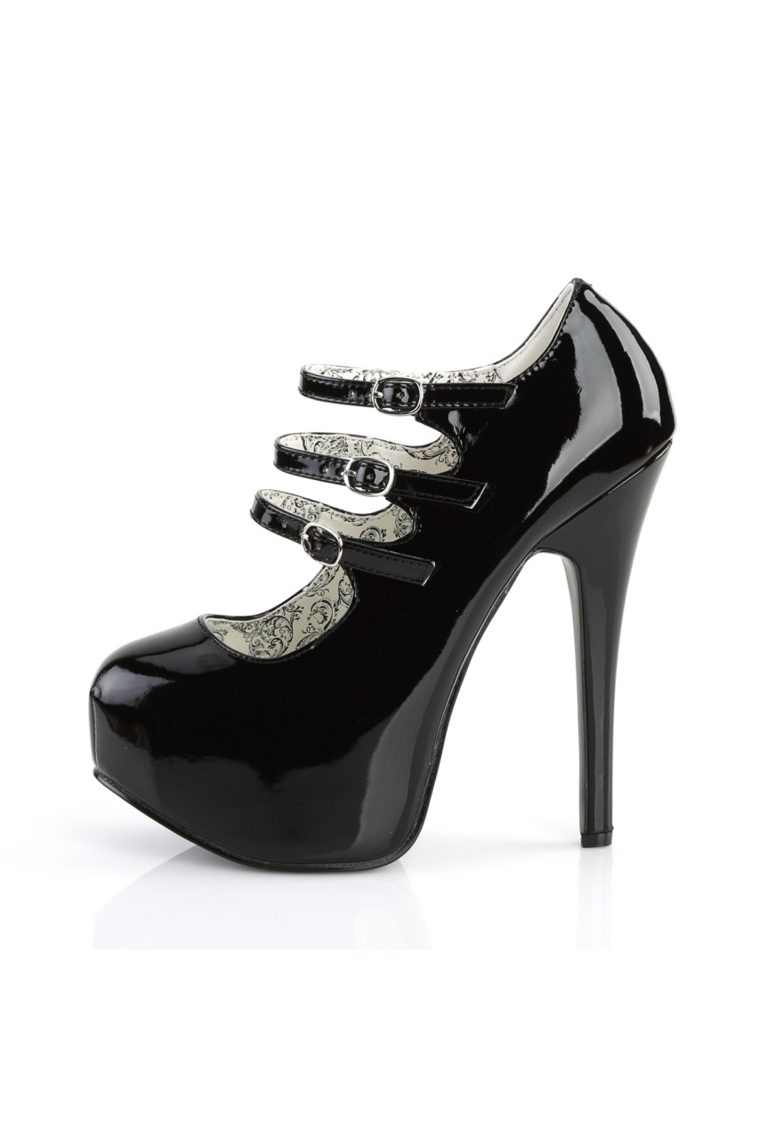 5 3/4″” (14.6cm) Heel, 1 3/4″” (4.5cm) Concealed Platform, 3 Buckle Adjustable Straps Patent Upper Pump