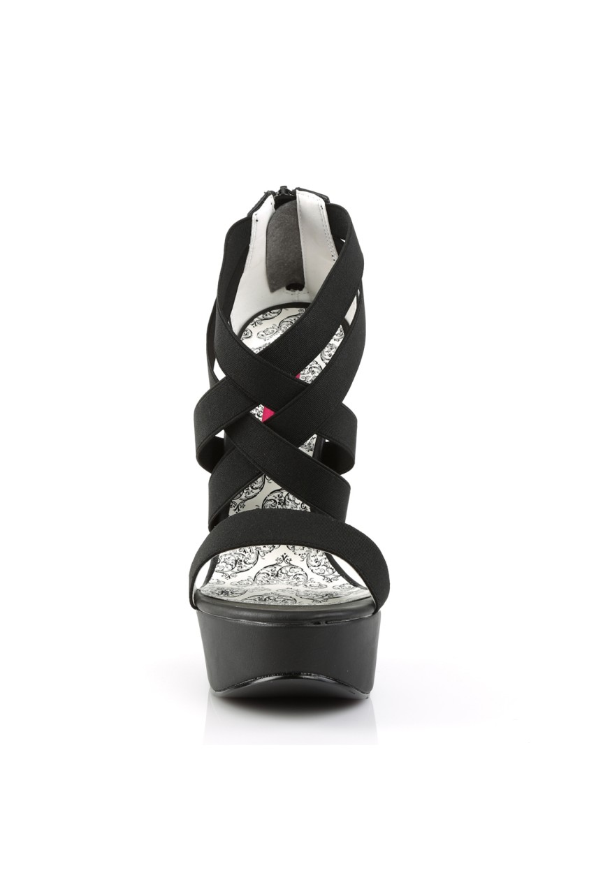 5 3/4″” (14.6cm) Heel, 1 3/4″” (4.5cm) Platform Cross Close Back Peep Toe Sandal, Back Zip