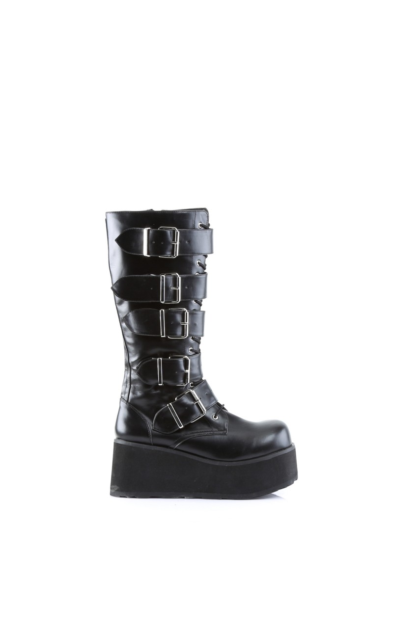 3 1/4″” (8.3cm) Platform Goth Punk Knee Boot with 5 Buckles and Full Inner Side Zip Closure