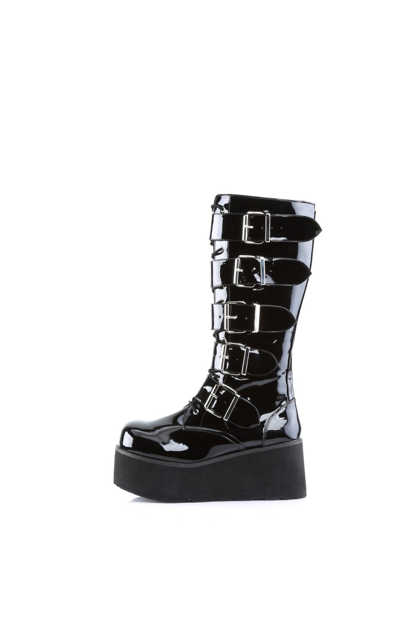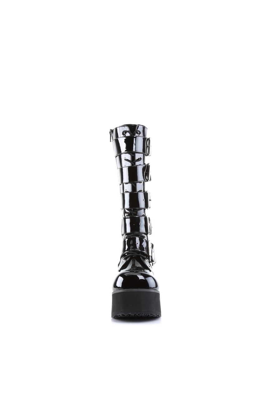 3 1/4″” (8.3cm) Platform Goth Punk Knee Boot with 5 Buckles and Full Inner Side Zip Closure