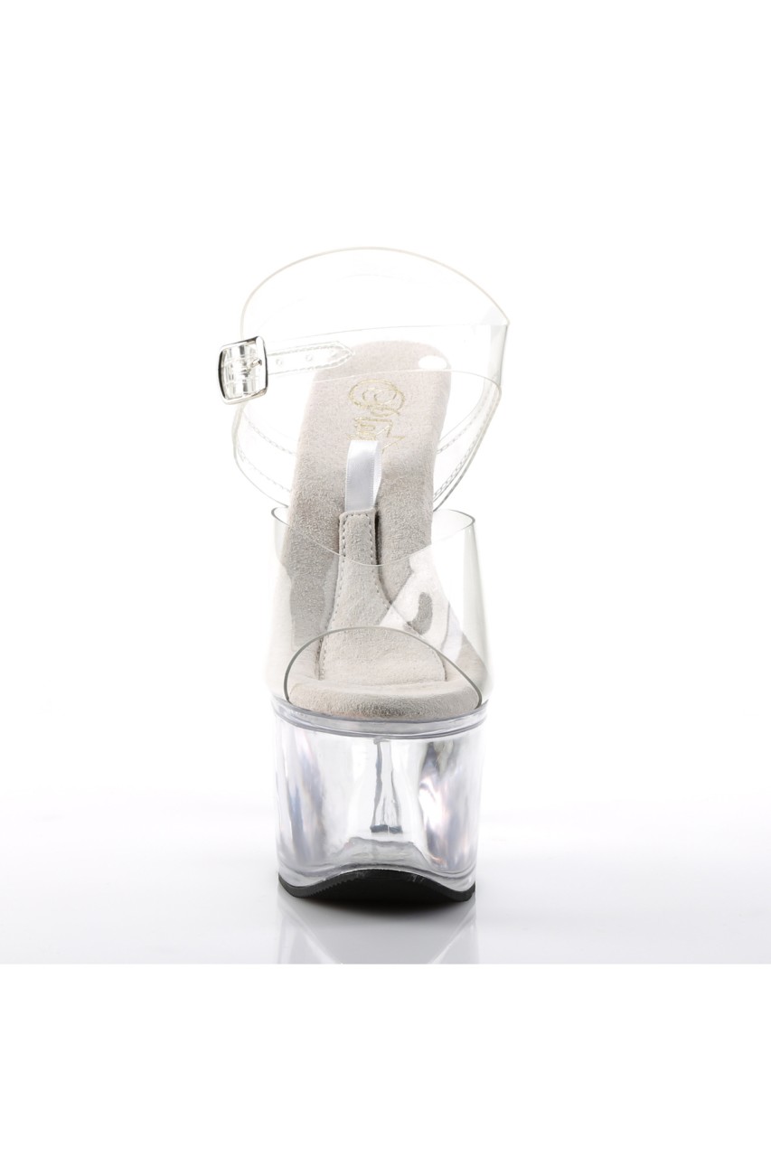 7″” (17.8cm) Heel, 2 3/4″” (7cm) Platform Peep Toe Ankle Strap Sandal