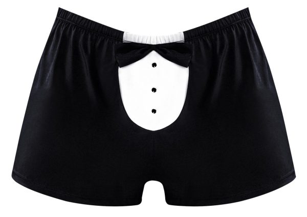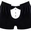 From the Novelty collection by Male Power, this style includes: A classic boxer featuring a tuxedo front with decorative faux buttons, satin bow accent, and plush elastic waistband. Stretchy polyester, spandex blend is cool and comfortable Hand wash separately, cold water, line dry. Do not bleach.