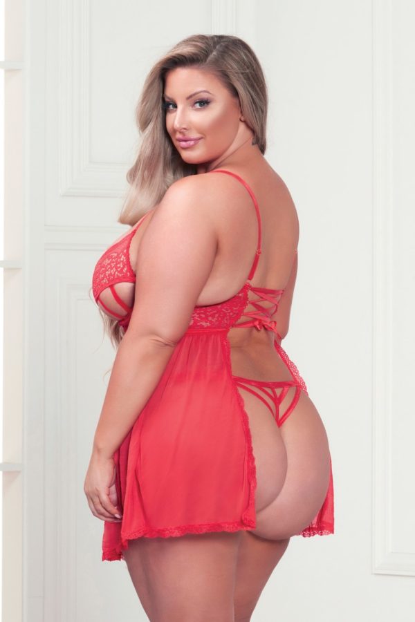 Two Piece Geo Lace Babydoll And G-String Set – STM11341X