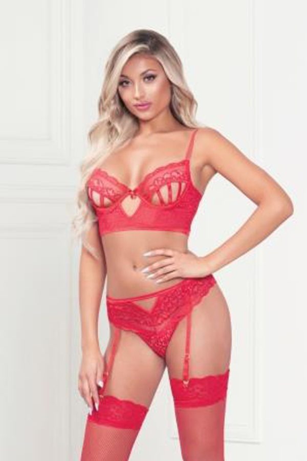 ALL ITEMS IN ‘GRACE’ AND ‘SCARLET’ ARE INTERCHANGEABLE! Scarlet is beautifully decorated in pretty roses with sheer lace panels and polka dots. All items are available in white or black. Item arrives packaged in its own Roza box.