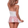 A halter dress which opens down front with separating zipper. Includes matching tie necklace.85% Nylon 15% Spandex