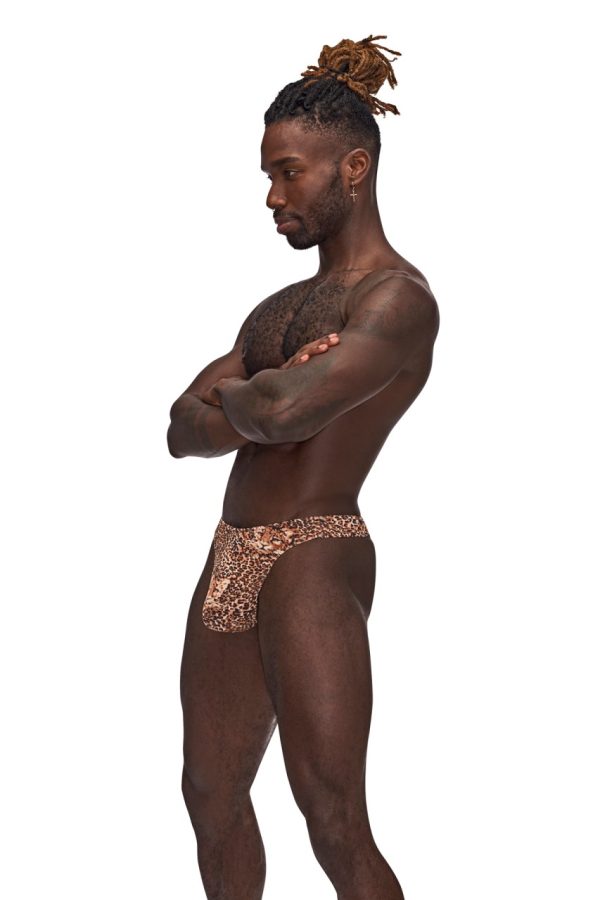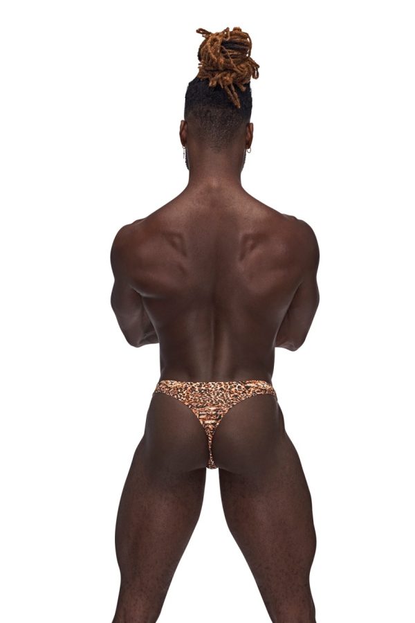 Leopard print wonder thong features uplift pouch and 1 inch back.90% polyester 10% Spandex