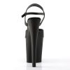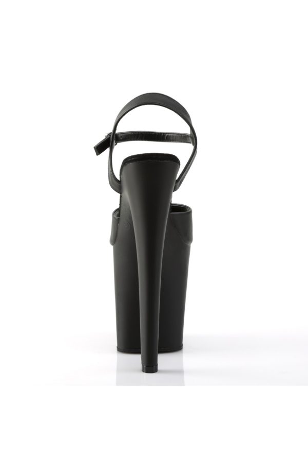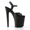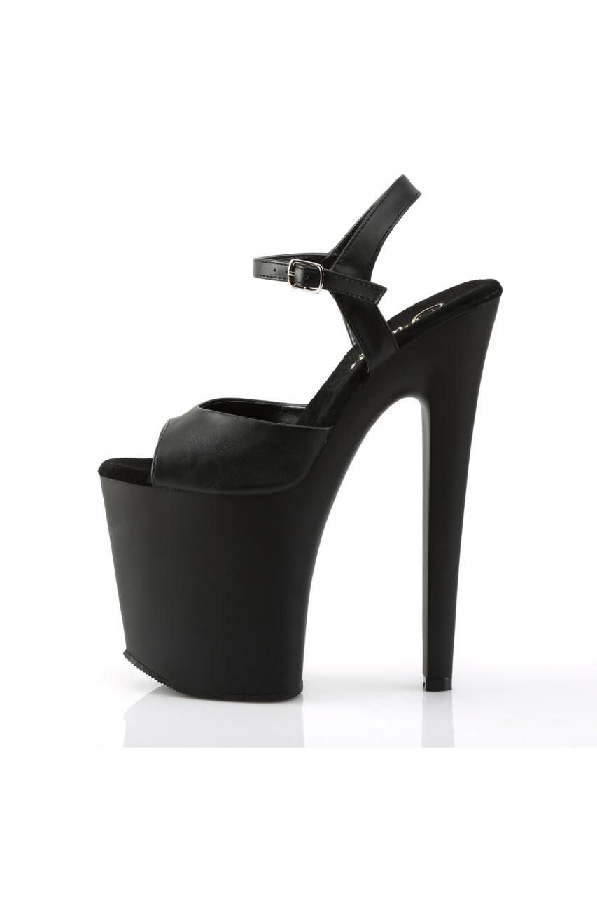 8″” (20.3cm) Heel, 4″” (10.2cm) Platform Ankle Strap Peep Toe Sandal, Black Faux Leather