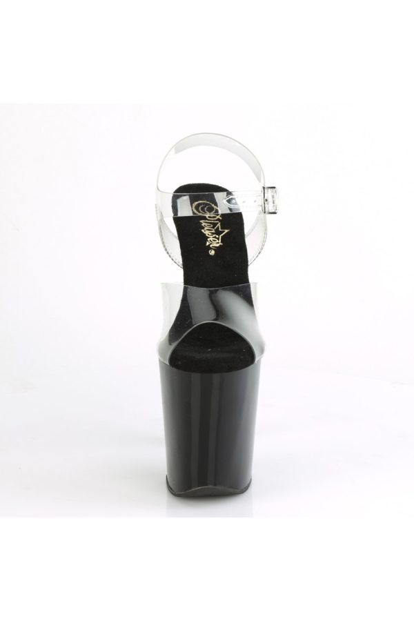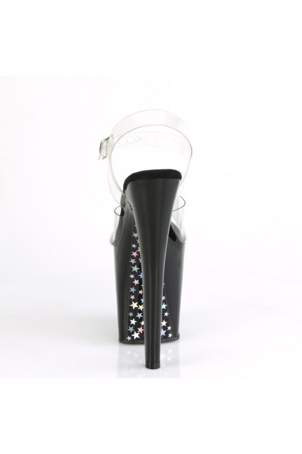 8″” (200mm) Heel, 4″” (100mm) Platform Ankle Strap Sandal w/Contrast Holographic Stars on the Platform Underside & Front of Heel