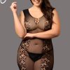 Plus size black sleeveless bodystocking dress. Items arrives packaged. Please note thong is not included.
