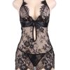 A lacey little number, this design features eyelash lace finish to hems and bra. A key hole design on he front and satin ribbon tie to the back. The thong is included making this a lovely set. Item arrives packaged in a Yesx satin bag.