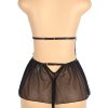 Beautiful open front deep v teddy in black tulle and stunning lace. Adjustable back straps and halter neck Arrives packaged in a Yesx satin bag.