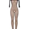 Shine bright and celebrate your curves with this stunning plus-size long-sleeved, crotchless bodystocking, adorned with sparkling diamante accents! Designed to hug your figure in all the right places, this sheer, stretchy piece combines elegance with a touch of daring. The open crotch detail adds a playful edge, while the long sleeves bring a hint of sophistication. Perfect for a night when you want to feel sexy, confident, and completely unforgettable, this bodystocking is made to embrace your curves and let you sparkle! Please note the thong is not included.
