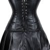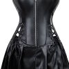 Timeless Faux Leather Corset with Feminine Edge Make a bold yet feminine statement with this chic faux leather corset set — a modern classic designed to sculpt your waist while adding instant style. Whether you’re heading out for a special occasion or simply want to elevate your wardrobe, this versatile corset is made to turn heads and enhance your natural curves. Key Features: Crafted from premium faux leather for a sleek, high-fashion look that’s cruelty-free Smooth front zipper for easy wear and a polished finish Adjustable cross-lacing for a customised, flattering fit Supportive steel boning offers structure and waist definition for a dramatic silhouette Feminine bandeau-style top with a playful pleated mini skirt for added charm Available in sizes XS–2XL, making it an ideal plus-size corset option Designed for style, comfort, and confidence, this faux leather set is perfect for parties, events, or edgy everyday wear. Shape your figure and showcase your style, no compromise needed.