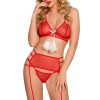 Sexy festive set with red transparent heart patterned fabric and fluffy faux fur white pom-pom bow. A great choice for a sensual festive night in. This set includes Santa hat, garter with suspender straps, thong and stockings. The bra is halter neck and adjustable. This item arrives packaged in a YesX satin bag.