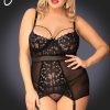 An irresistible chemise with elegant floral lace and sultry sheer fabric. The chemise has adjustable shoulder straps and arrives with matching sheer fabric thong and removable suspender straps. PLEASE NOTE: Stockings not included. Please see related products. This item arrives packaged in a YesX satin bag.