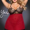 An alluring and beautiful babydoll with sultry lace bust and delicate eyelet lace trim. This babydoll features adjustable shoulder straps and arrives with matching thong. This item arrives packaged in a YesX satin bag.