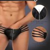 Seductive black sheer floral lace men’s boxer brief with satin like finish waist band. Featuring decorative criss-cross tie detailing at the back of the briefs.