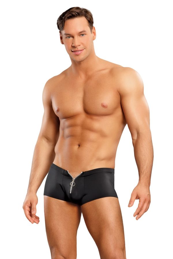From the Nylon Spandex collection by Male Power, this style includes: A stretch mini short featuring a comfort fit pouch, a functional zipper in the front with a decorative oval slider, and a low cut waist and high cut legs. Stretchy nylon spandex blend is edgy, cool and comfortable Hand wash separately, cold water, line dry. Do not bleach.