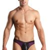Zipper thong with a low cut waist features a 1 inch back with contrasting trim and zippered pouch.