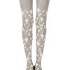 Opaque light grey 100 denier reeve tights with festive silver and yellow confetti print. The print is on both legs front and back.