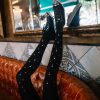 Dash from the yacht to the beach in Palm Beach tights that feature palm trees in a metallic allover print. You are shining darling. Colour: Black tights with Gold print. Thickness: 120 denier. Your entire leg will be getting Zohara love with allover prints. Both sides are not created equal with allover tights so please look at the foot of the tights before wearing to ensure you don’t step on the print. (The front print will be lower than the back.) No doubt you will shine with our metallic prints. Please note that these prints require extra care when washing and will naturally fade with wear. Unless they have X-ray vision no one will be able to see through these opaque tights. Hand print no two are the same.