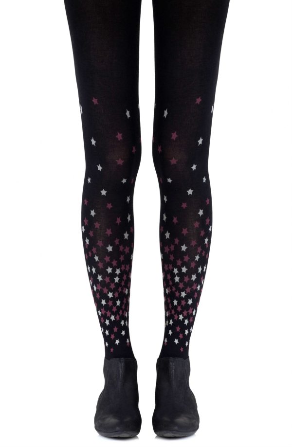 Stand out from the crowd with Rise and Shine tights that feature an allover star print. Colour: Black tights with Burgundy print. Thickness: 100 denier. Your entire leg will be getting Zohara love with allover prints. Both sides are not created equal with allover tights so please look at the foot of the tights before wearing to ensure you don’t step on the print. (The front print will be lower than the back.) Made from Cotton. Unless they have X-ray vision no one will be able to see through these opaque tights. Hand print no two are the same.