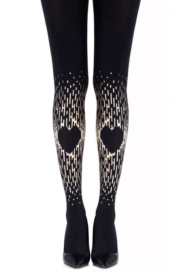 Love is all around with the Spread The Love tights that feature an emerging heart from an abstract graphic that is two-sided. We love actually. Colour: Black tights with Gold print. Thickness: 120 denier. No doubt you will shine with our metallic prints. Please note that these prints require extra care when washing and will naturally fade with wear. Unless they have X-ray vision no one will be able to see through these opaque tights. With an identical print on the front and back get ready for 360° visual impact. Hand print no two are the same.