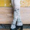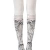 Mai Tais for two! Strum your ukelele with Waikiki Nights sock-style tights that mix a palm leaf illustration and stripes. Colour: Cream tights with Black Red print. Thickness: 100 denier. Made from Cotton. Unless they have X-ray vision no one will be able to see through these opaque tights. Get athletic with our two-sided knee-high sock-style print. Hand print no two are the same.